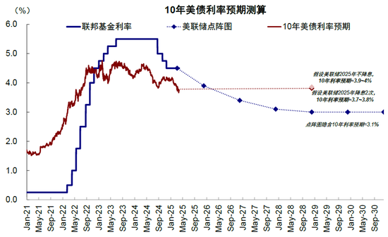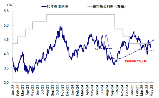 图表:极端情形下,不降息对应美债利率中枢在4.2%~4.5%