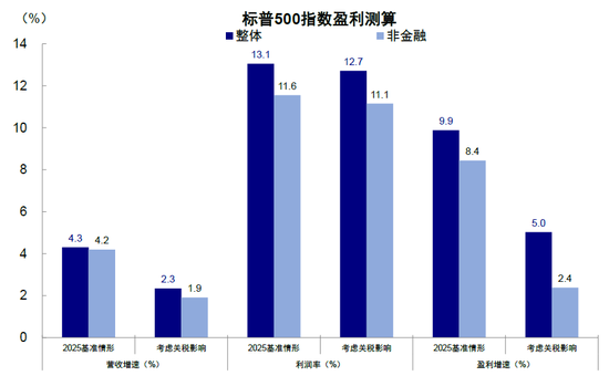 图表:我们测算16~17%的有效税率或拖累标普500 2025年盈利增速5个百分点,由10%降至4.9%