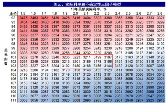 图表:黄金隐含的美元水平与当前美元指数基本接近(当前101)